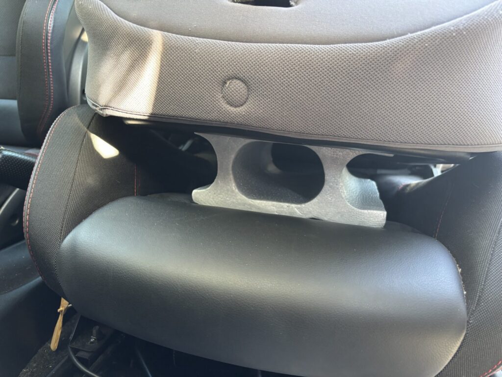 助手席のシート形状に合わず、発泡スチロールブロックを挟んで安定させています