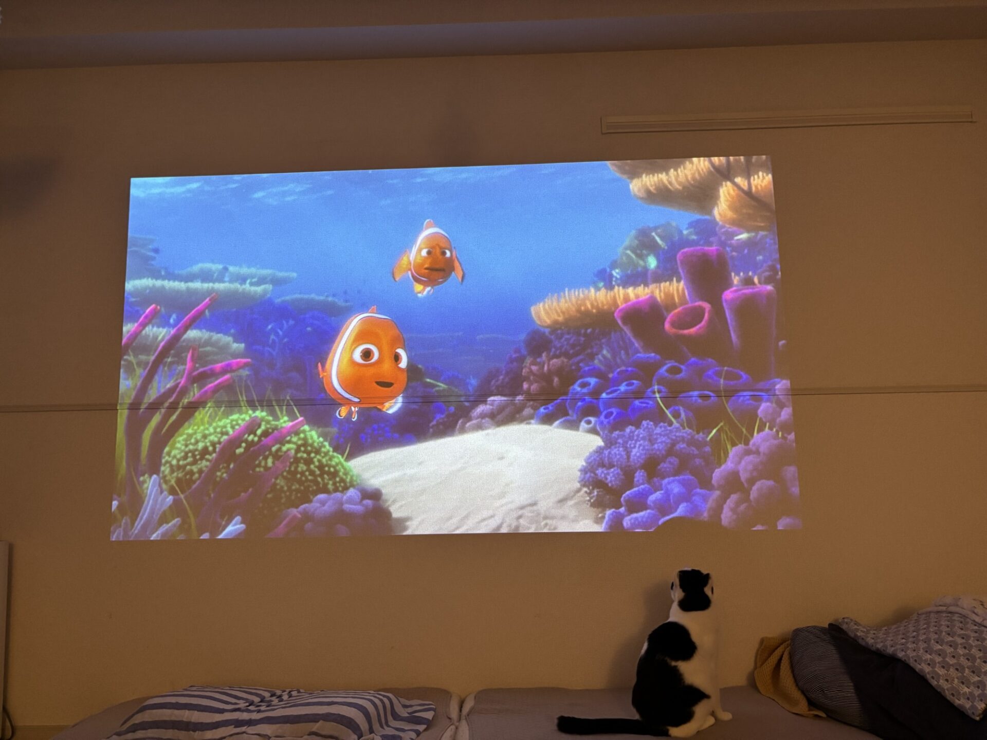 → 自分一人ならiPadで十分だったので、正直出番は少なめ。 - 2歳半になった今では、プロジェクターに映して一緒にディズニー映画やアニメを楽しめる!